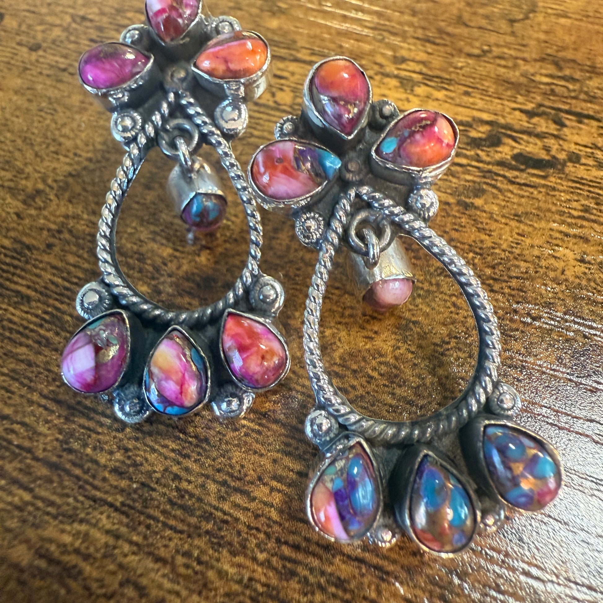 Red Rose Dahlia Gemstone Earrings 14 Stones Handmade 925 Sterling Silver