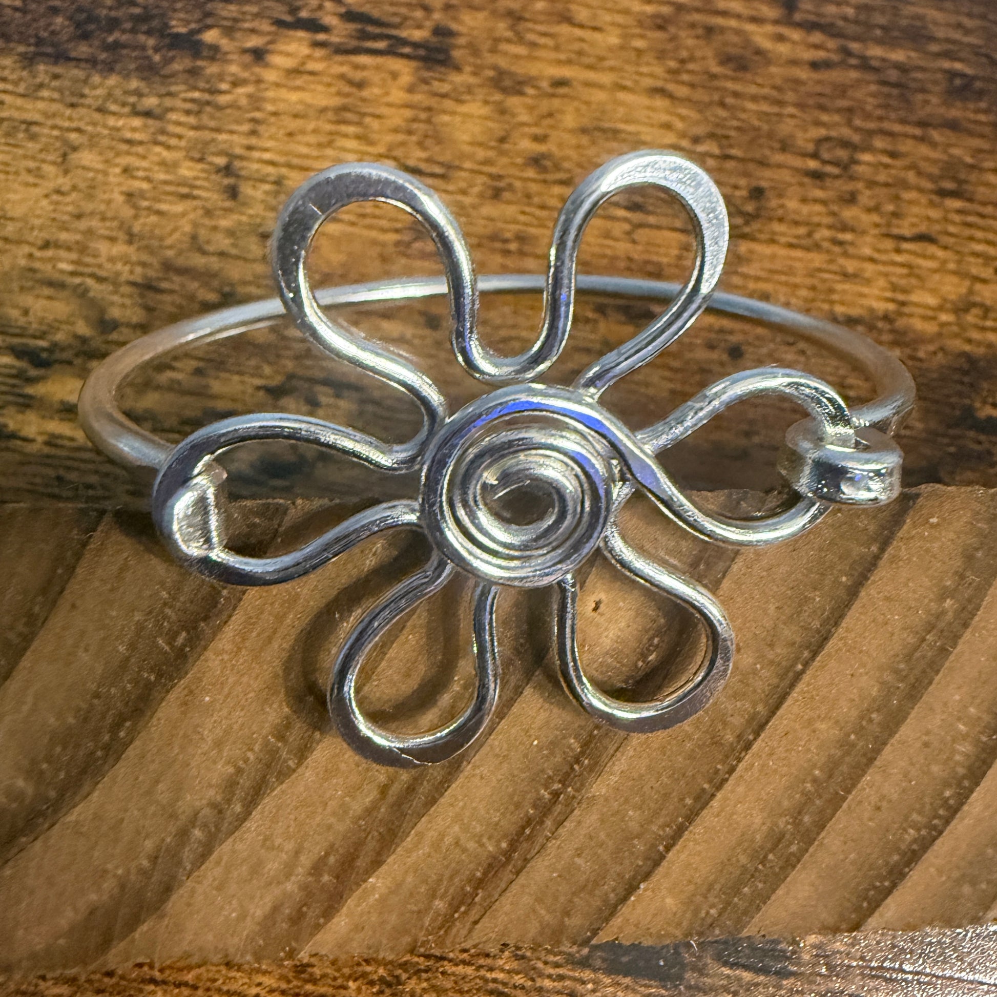 Silver Plated Daisy Brass Bangle Bracelet Handmade By Artisans