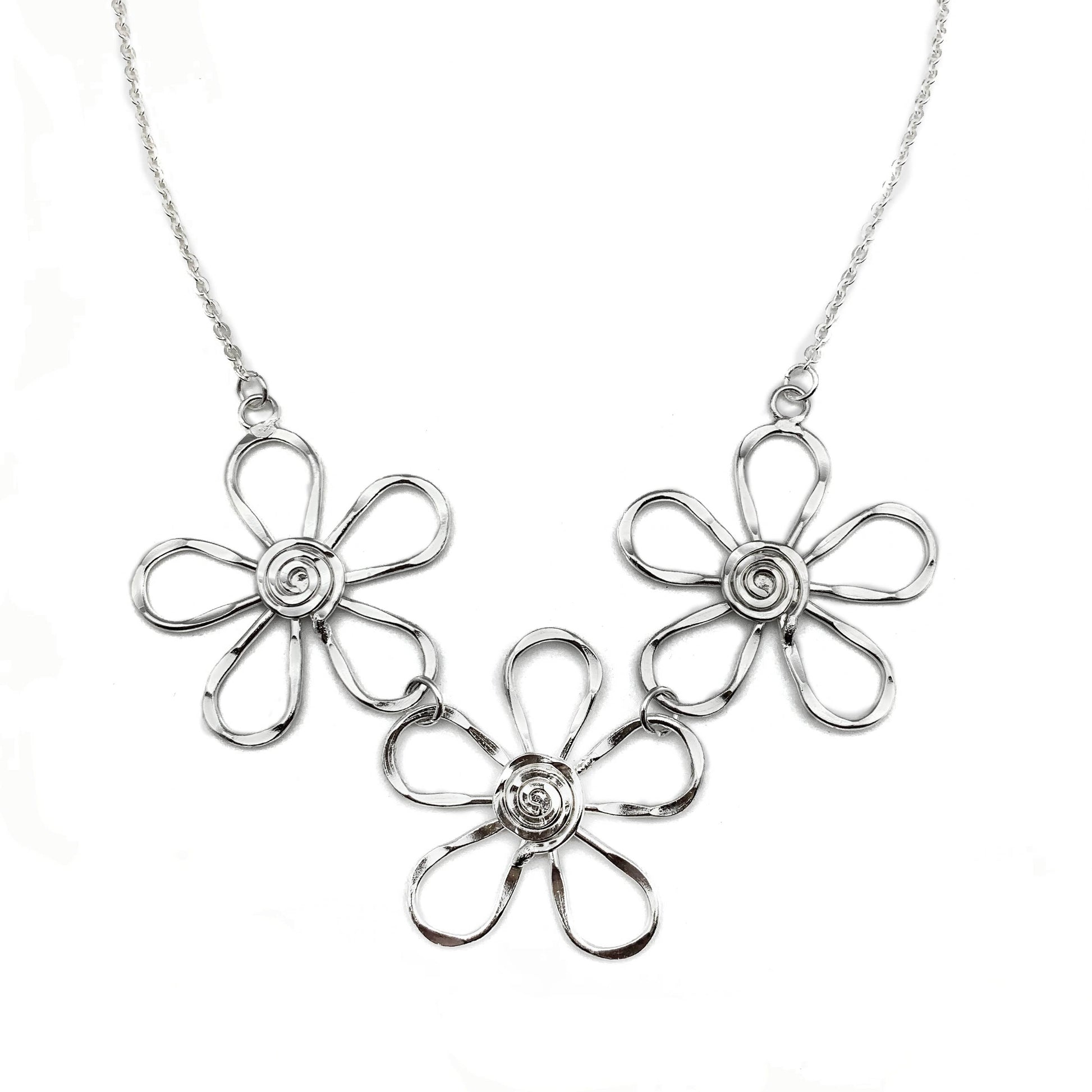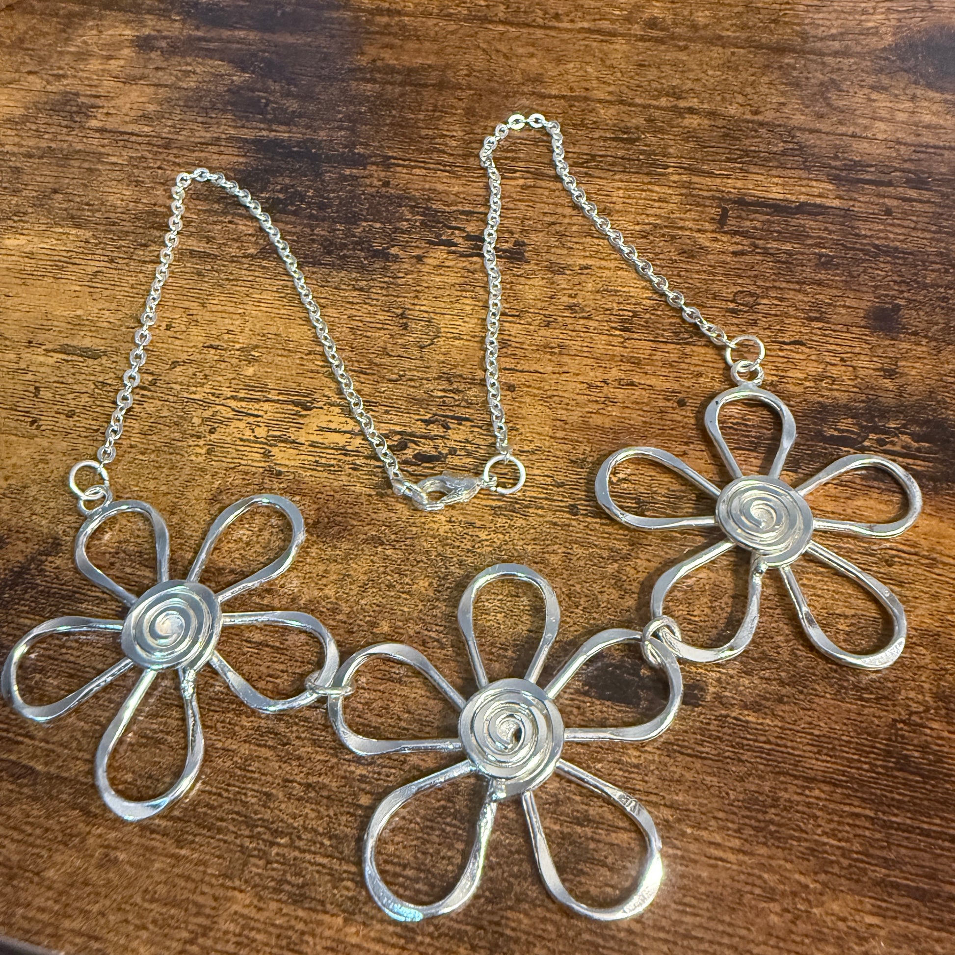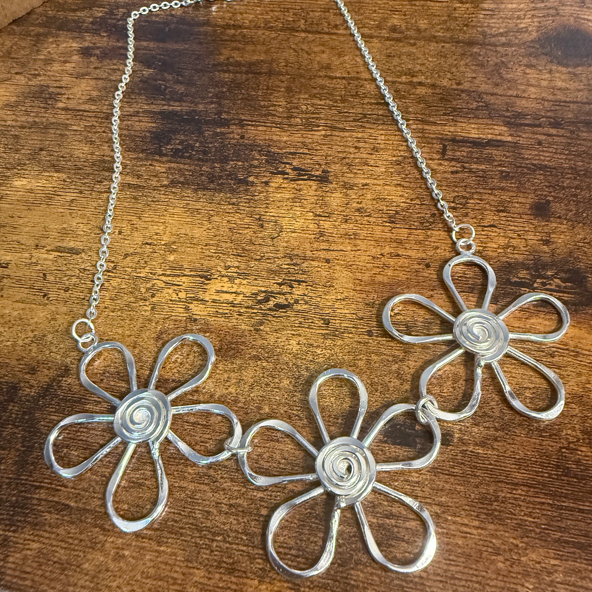 Handmade Sterling Silver Plated Necklace With Spiral Center Flowers
