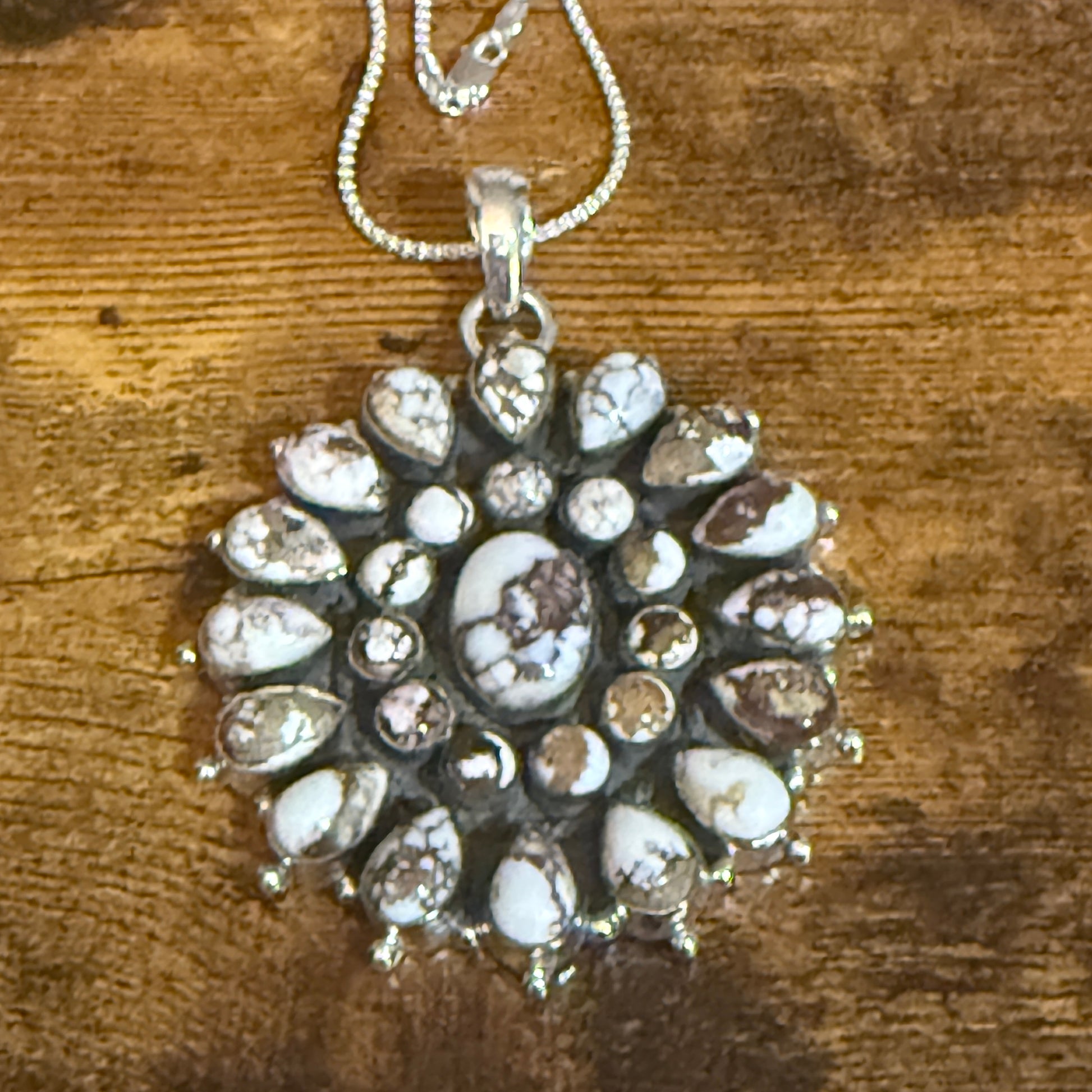 - Genuine Wild Horse Jasper centerpiece set in a handcrafted Navajo sterling silver pendant, showcasing natural colors and unique banding for a one‑of‑a‑kind look.
