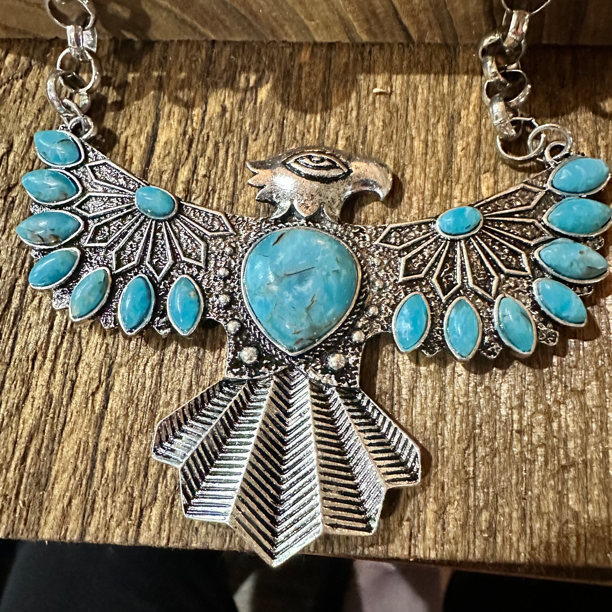 Elevate your everyday with the Thunderbird Faux Turquoise Necklace and Earrings Set in Mixed Metals—bold Southwestern-inspired style with faux turquoise accents in a versatile mixed-metal finish.