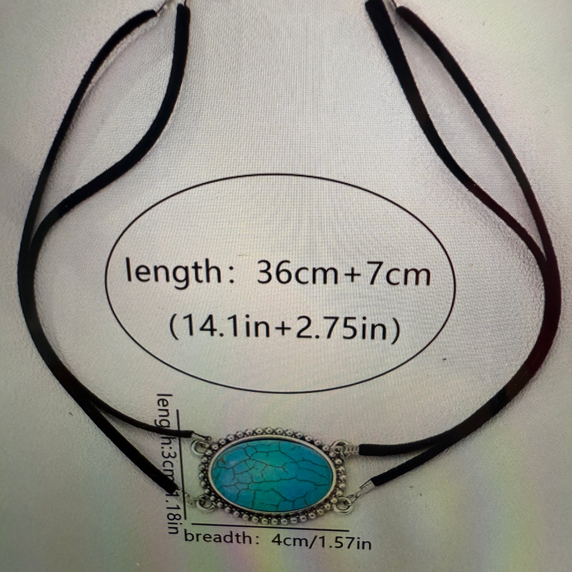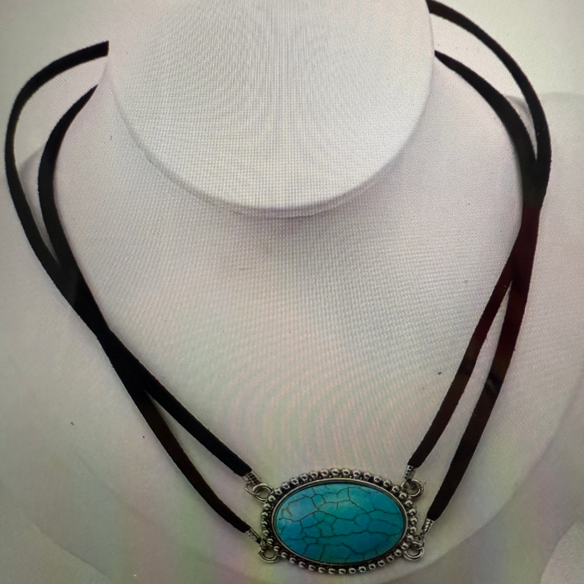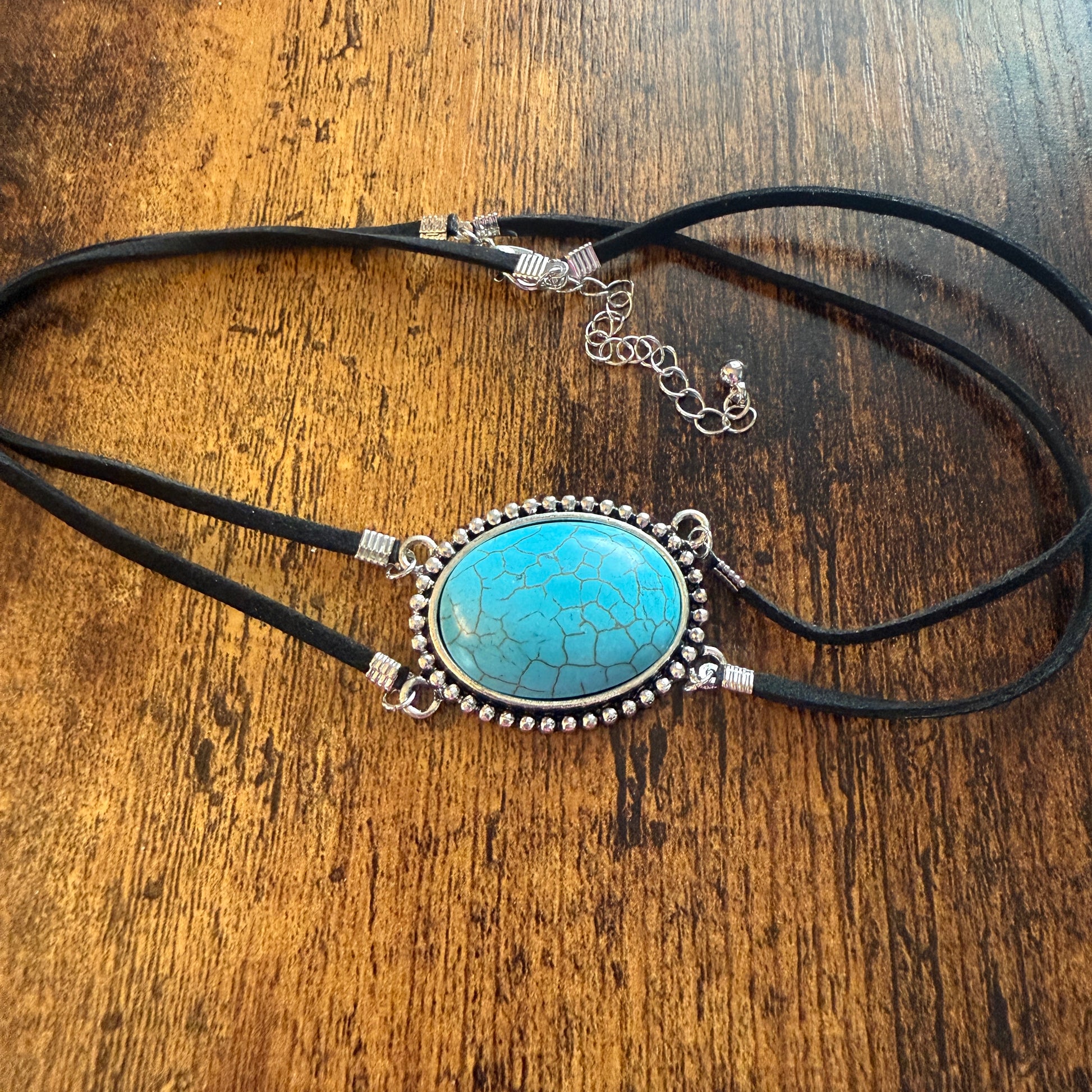 Western Cowgirl Turquoise Stone Choker Necklace With Adjustable Black Cord