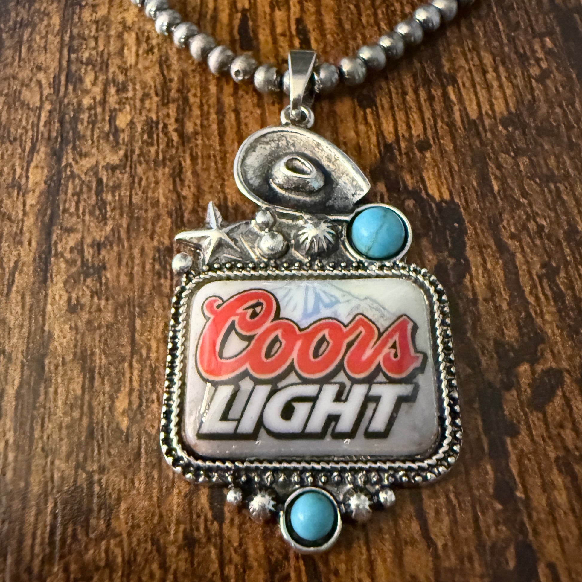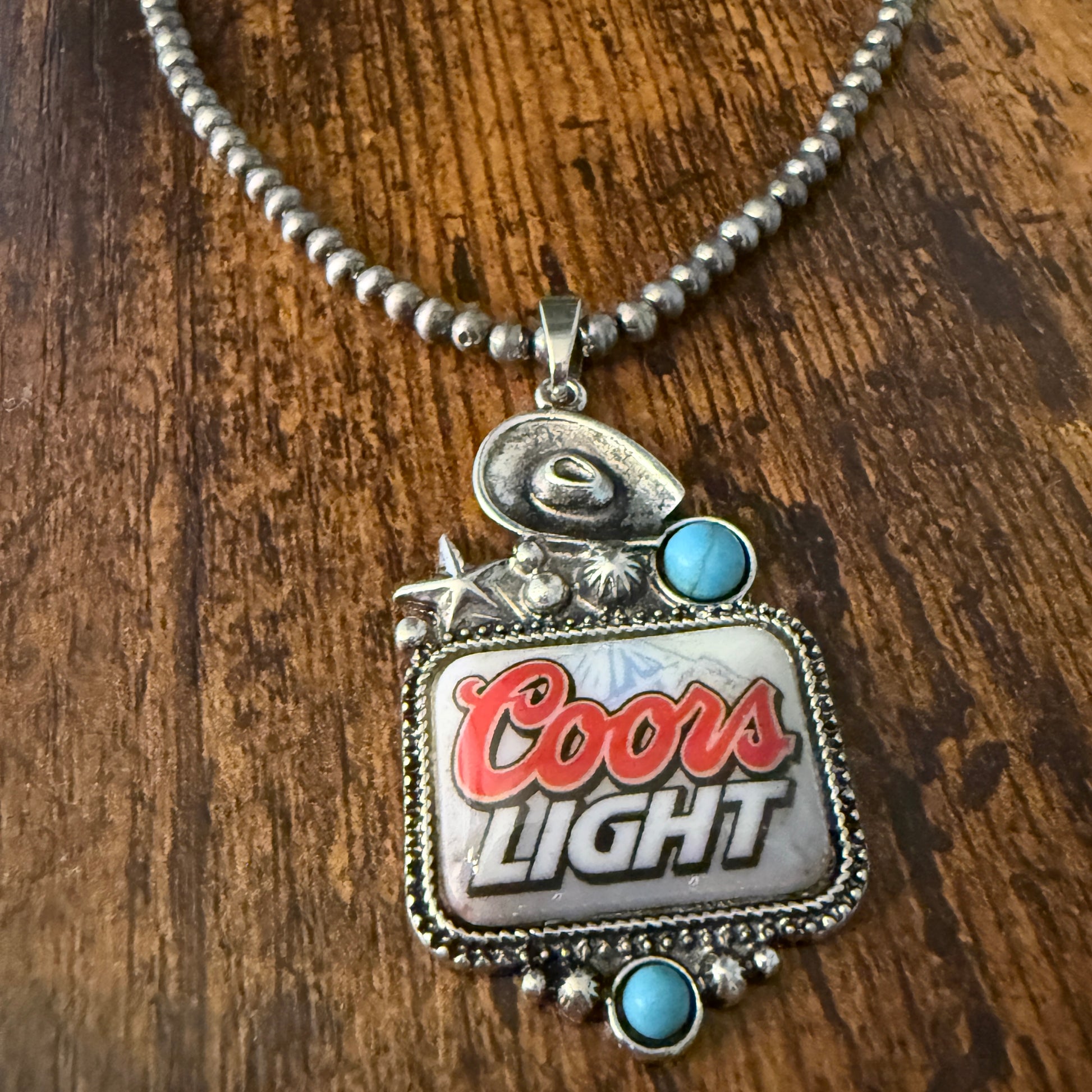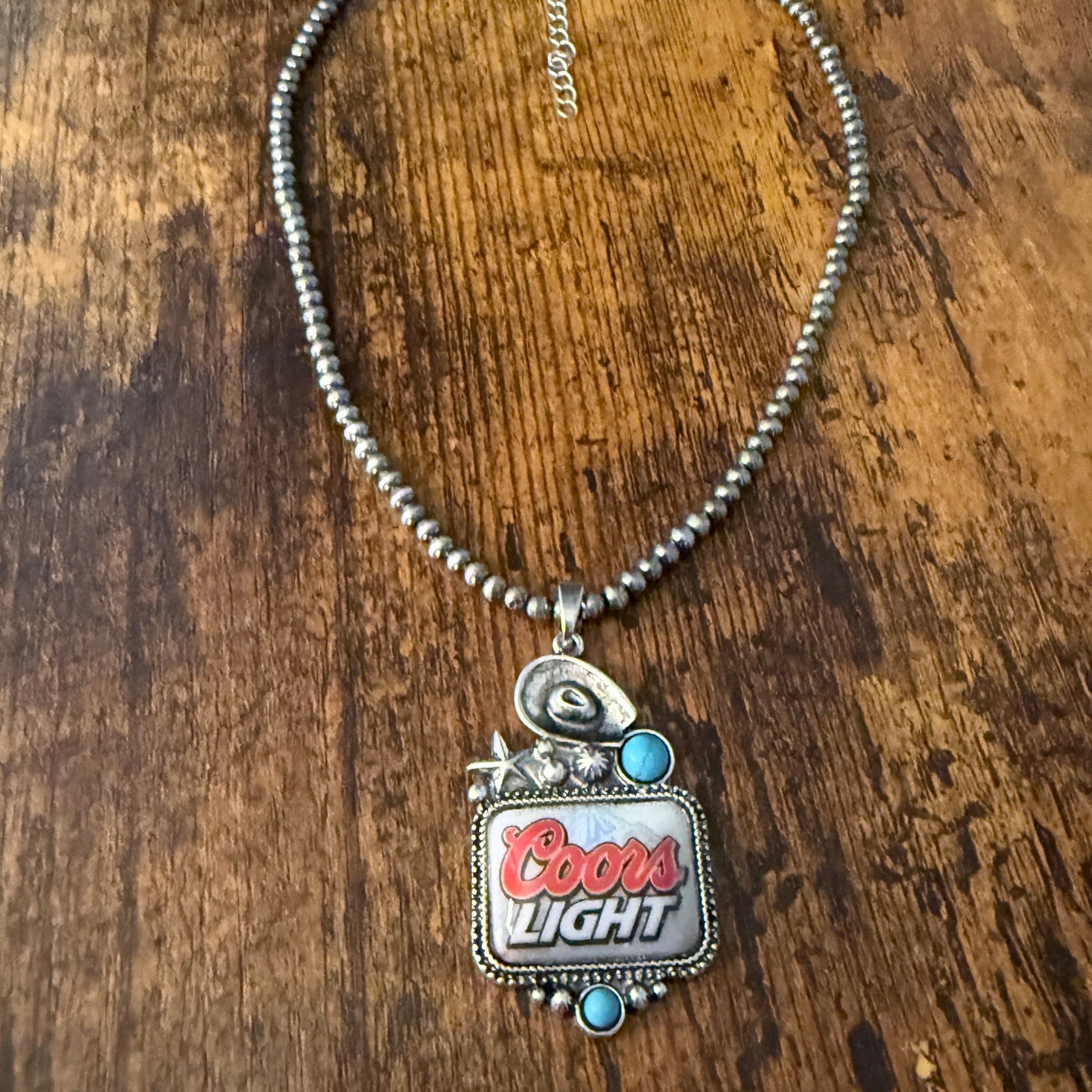 Western Cowgirl Coors Light Beer Silver Pearl Choker Necklace