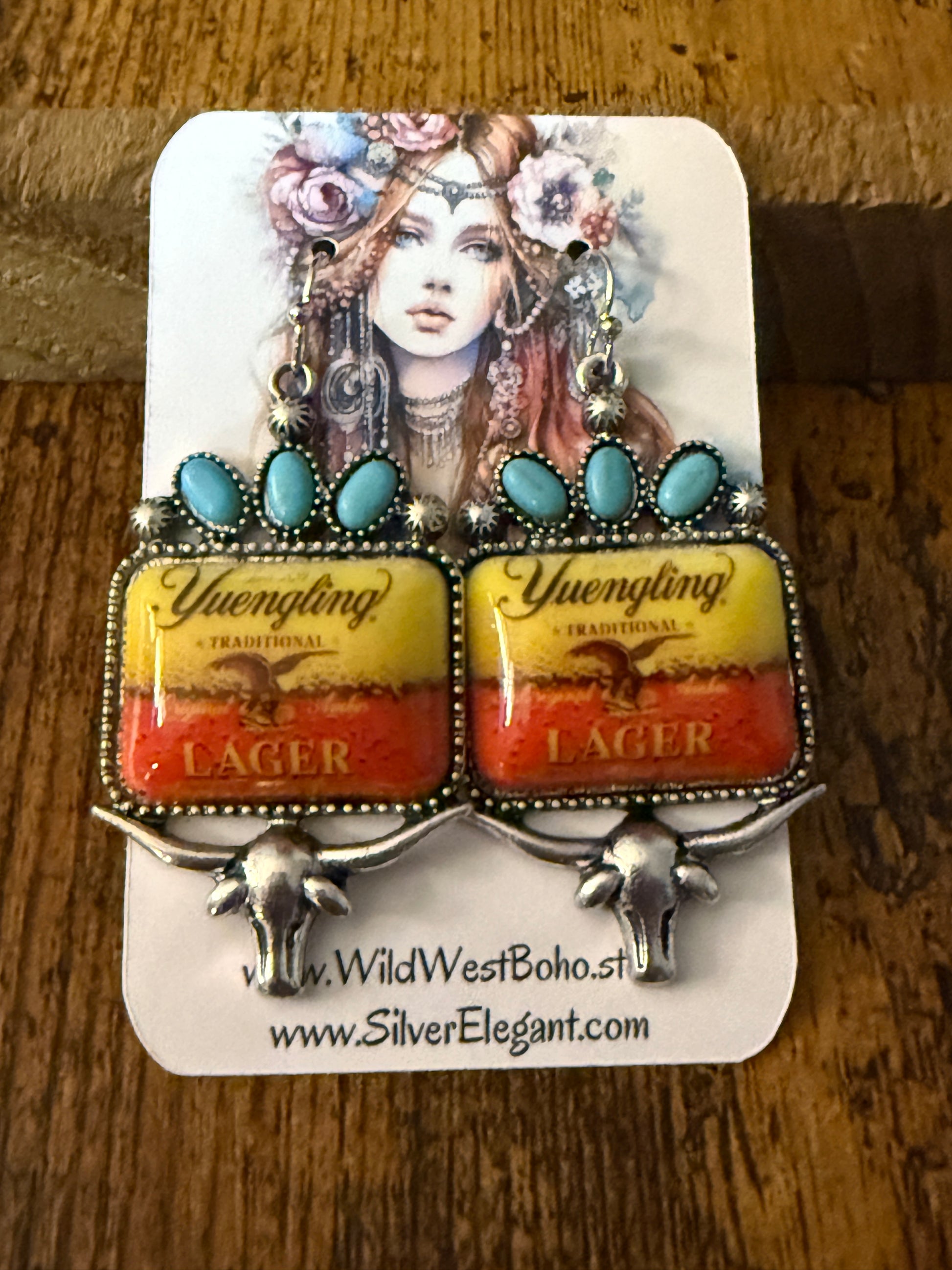 - Handcrafted drop wire earrings celebrate Yuengling Lager aesthetics with authentic Western cowgirl flair, featuring copper and silver-tone accents for versatile styling.