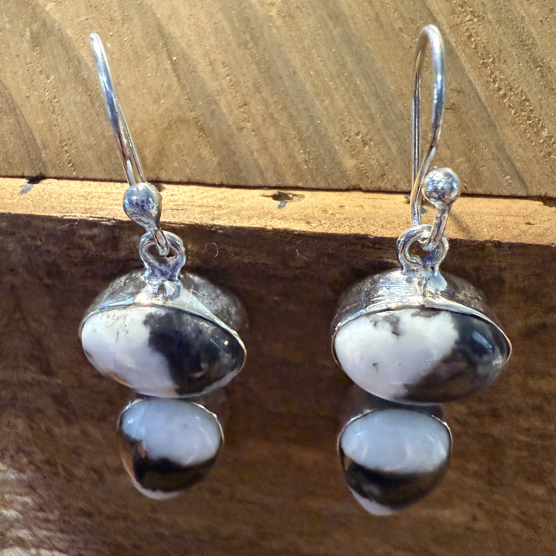 Elegant White Buffalo Turquoise Dahlia earrings in sterling silver, featuring a distinctive natural pattern and a graceful dangle for everyday refinement or special occasions.