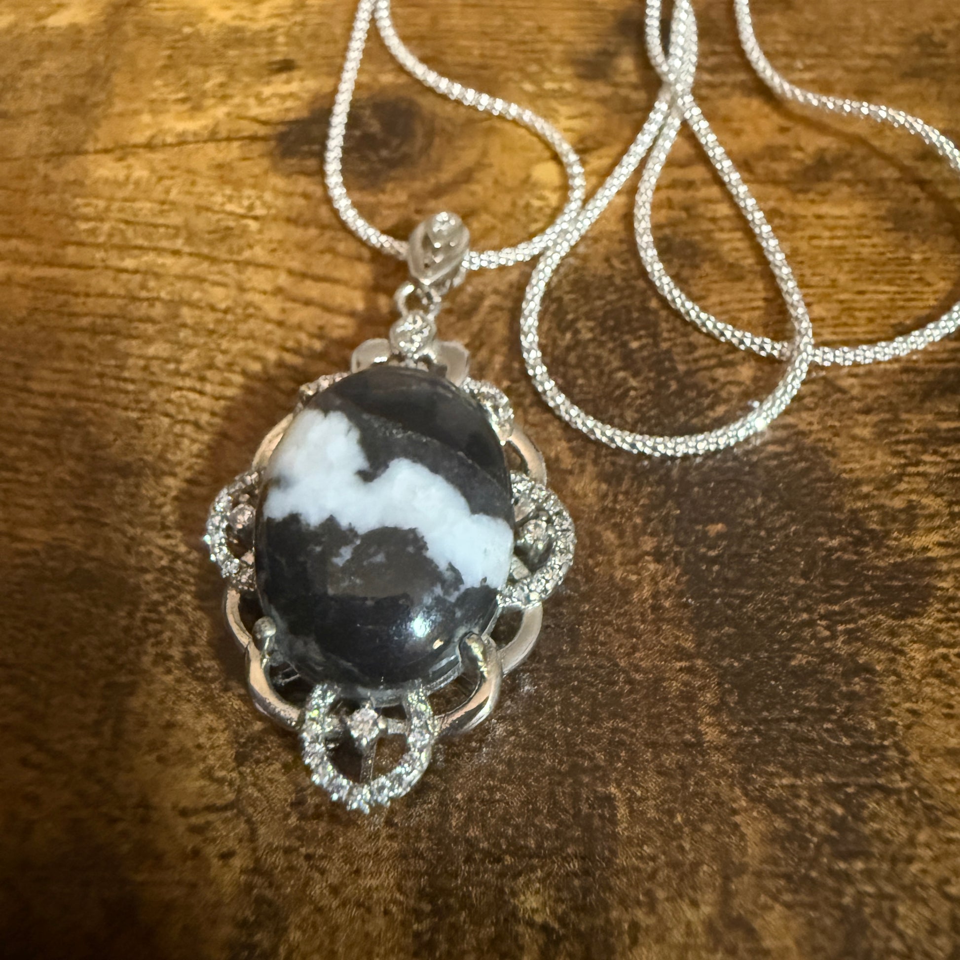 White Buffalo Turquoise Dahlia Pendant Necklace Sterling Silver 18 Inch Chain