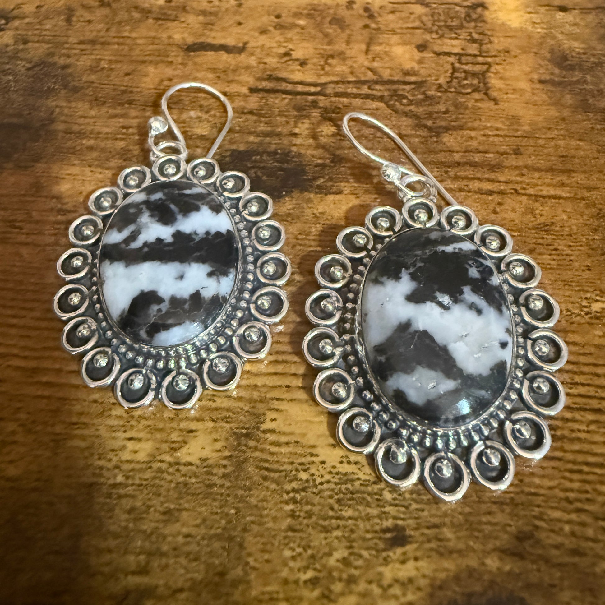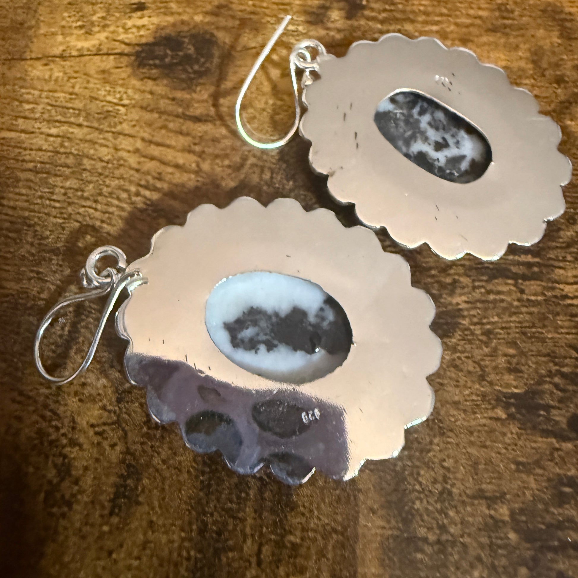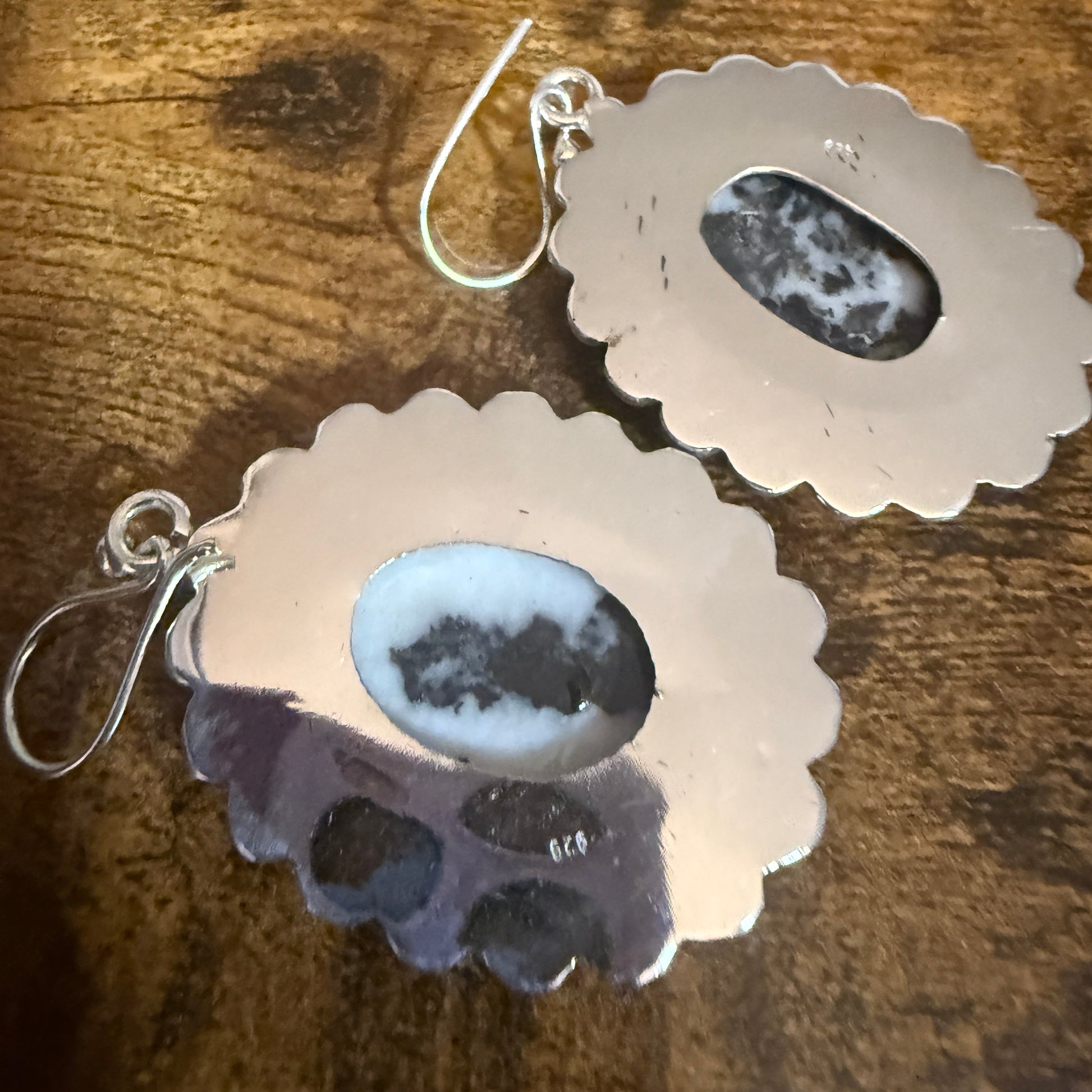 White Buffalo Turquoise Dahlia Stone Drop Lace Earrings 925 Sterling Silver