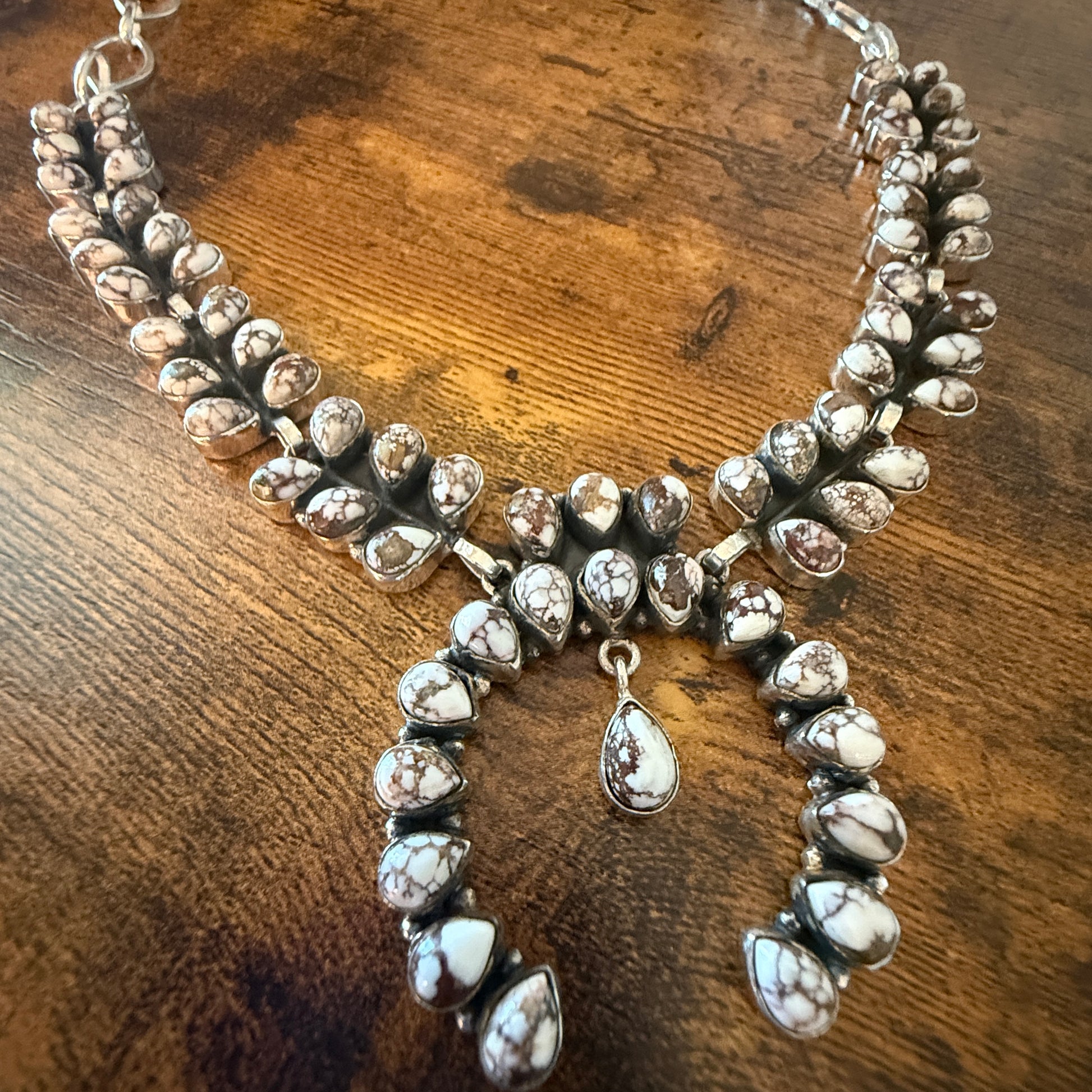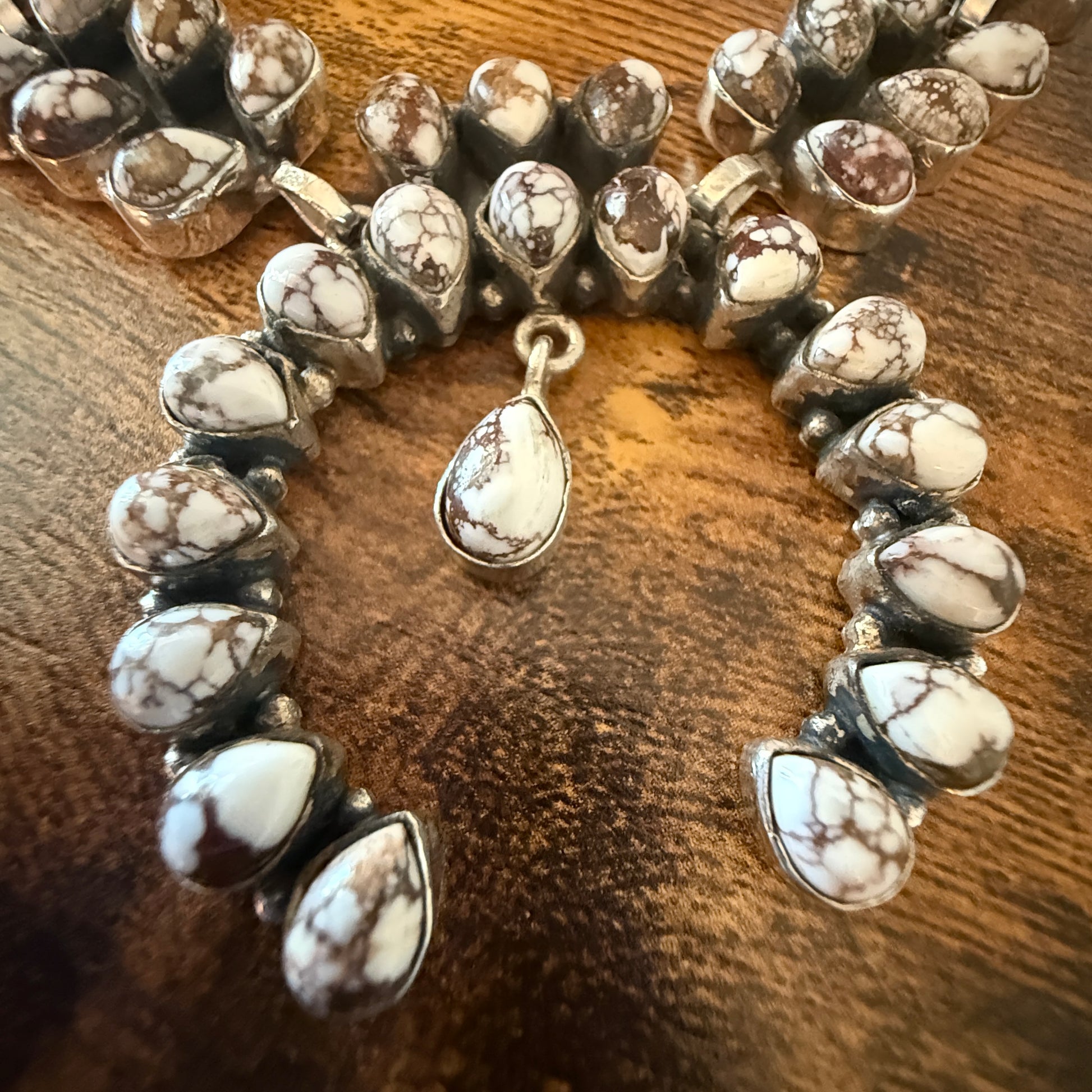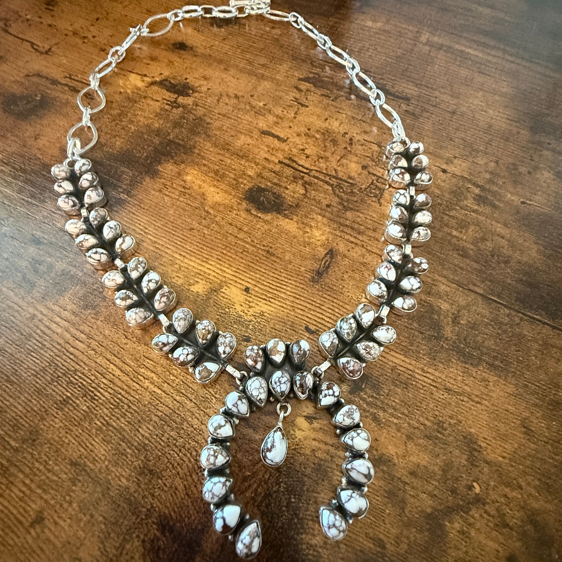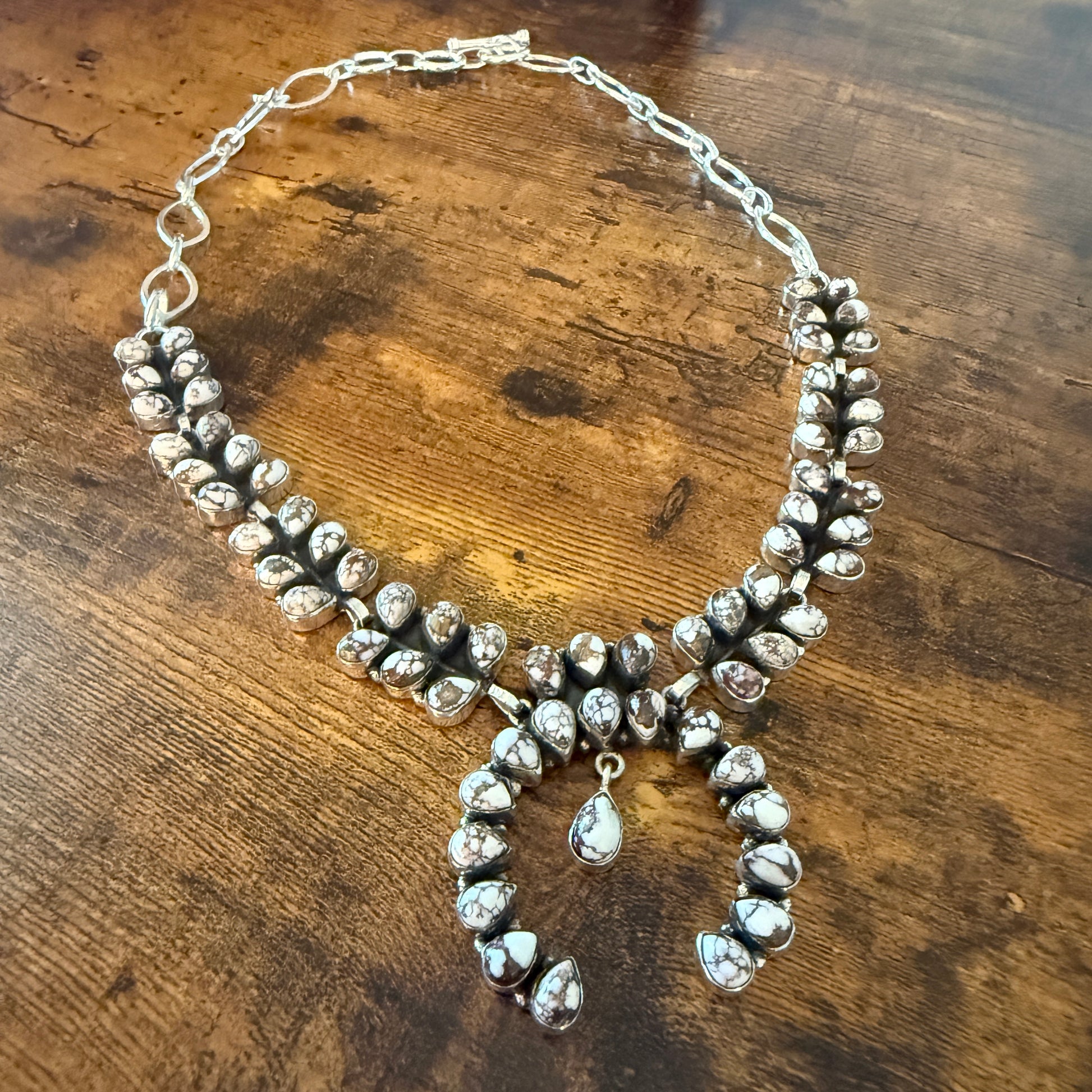 Wild Horse Turquoise Dalhia Gemstone Squash Navajo Necklace Sterling Silver