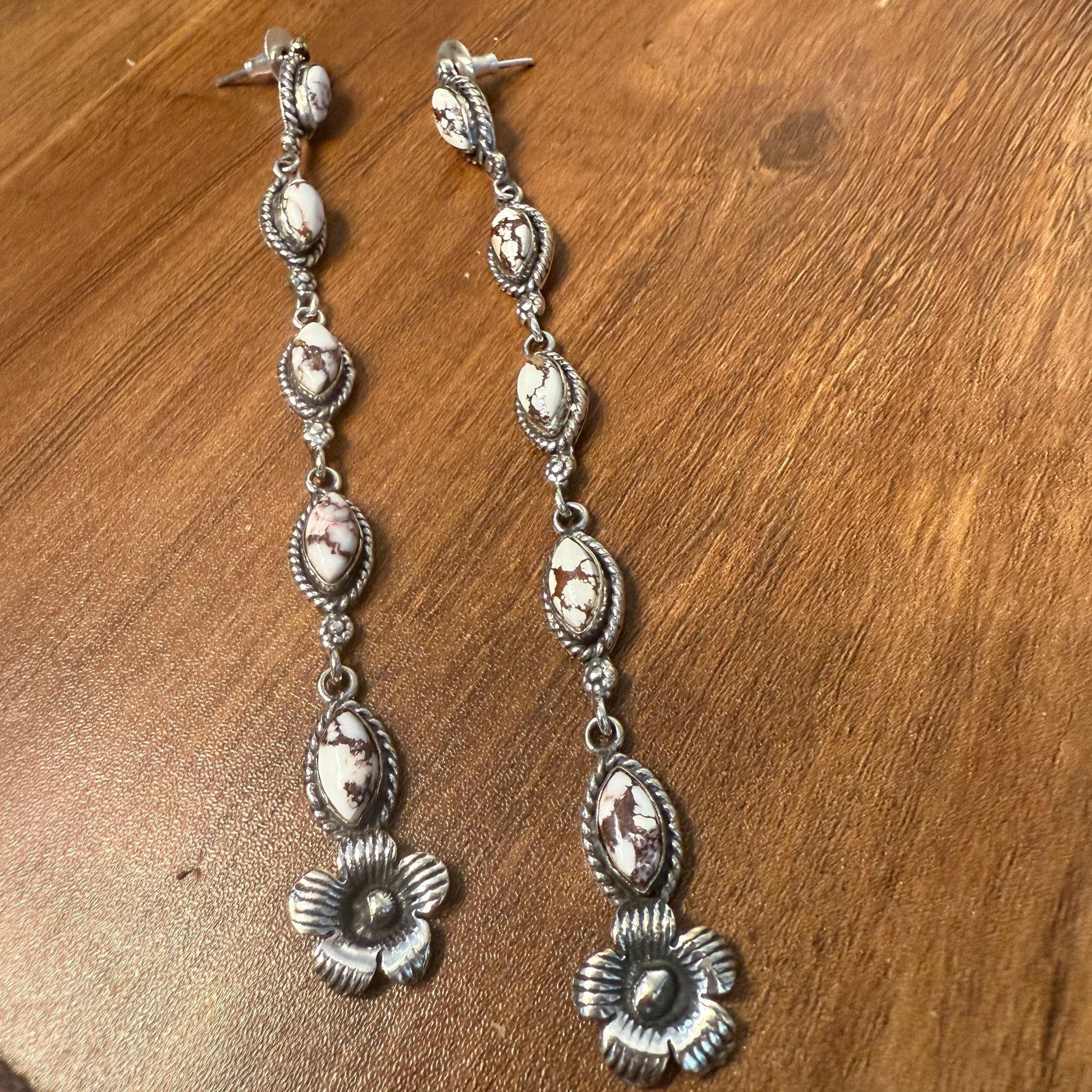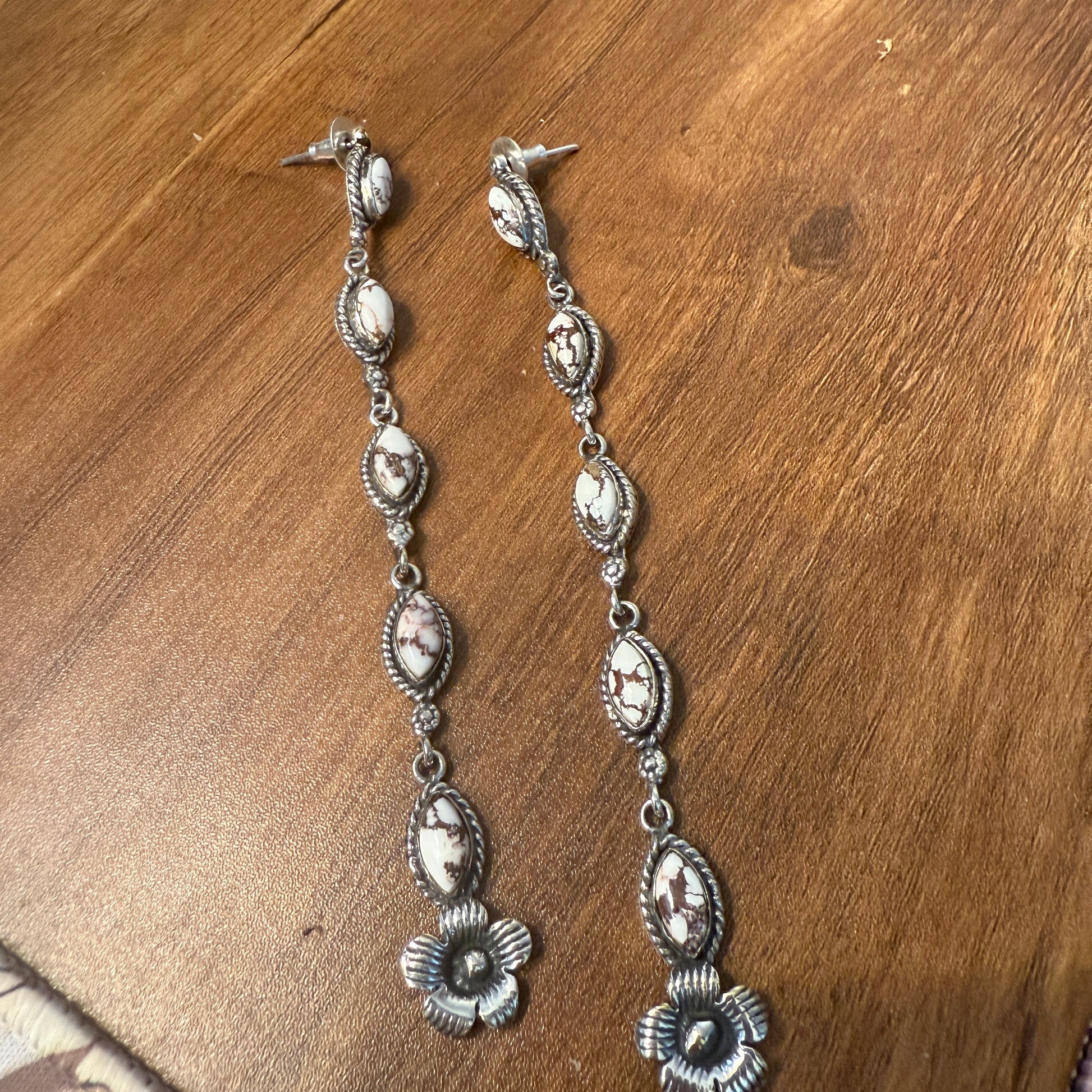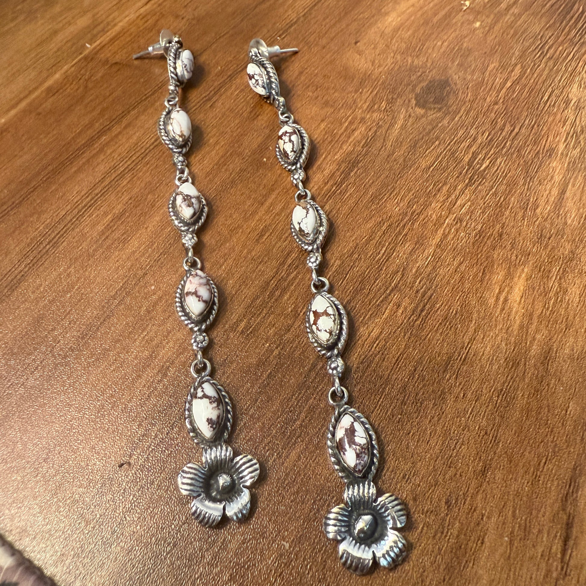 Wild Horse Turquoise Gemstone Sterling Silver Handmade Stud Earrings, 4.5 inches